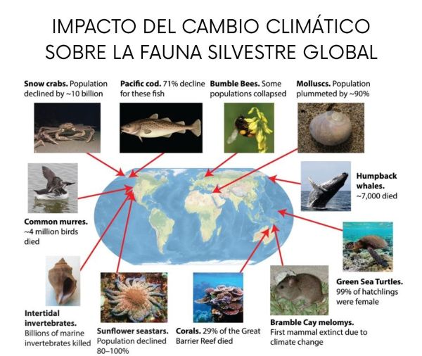 Este artículo analiza los riesgos que representa el cambio climático para las poblaciones de fauna silvestre a nivel global, con énfasis en sus posibles impactos negativos. A partir de dos bases de datos públicas sobre biodiversidad, examinamos información de 70.814 especies pertenecientes a 35 clases distintas, detallamos su distribución y evaluación por clase, e identificamos las principales amenazas relacionadas con el clima. Según nuestro conocimiento, este es el primer análisis que utiliza los datos de la Unión Internacional para la Conservación de la Naturaleza (UICN) para explorar de manera sistemática las amenazas climáticas que enfrentan los animales a escala mundial. Además, presentamos ejemplos recientes de colapsos poblacionales atribuidos al cambio climático y proponemos recomendaciones científicas y políticas para enfrentar este desafío. TAGS: Cambio climático. Fauna. Animales silvestres. Conservación ambiental. AUTORES: William J. Ripple , Cristóbal Wolf , Jillian W. Gregg , Erik Joaquín Torres-Romero