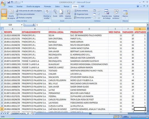 En la actualidad, 155 frigoríficos nacionales con inspección del Senasa cargan todos los datos de faena al Reporte de Información Computarizada (al cual se accede vía Intranet). Estos datos incluyen Nombre del frigorífico, Ubicación, Fecha de faena, Número de tropa, Cantidad de animales faenados, Cantidad de animales afectados, Nombre del establecimiento de procedencia, su Ubicación, Número de Renspa, Nombre del productor, entre otra información sobre un reporte.