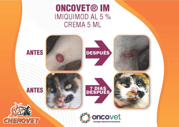 Potente inmunoestimulante local indicado para el tratamiento tópico de perros y gatos inmunocompetentes que presentan carcinoma de células escamosas, melanoma, queratosis actínica, hemangioma cutáneo foto inducido y/o papilomas virales.