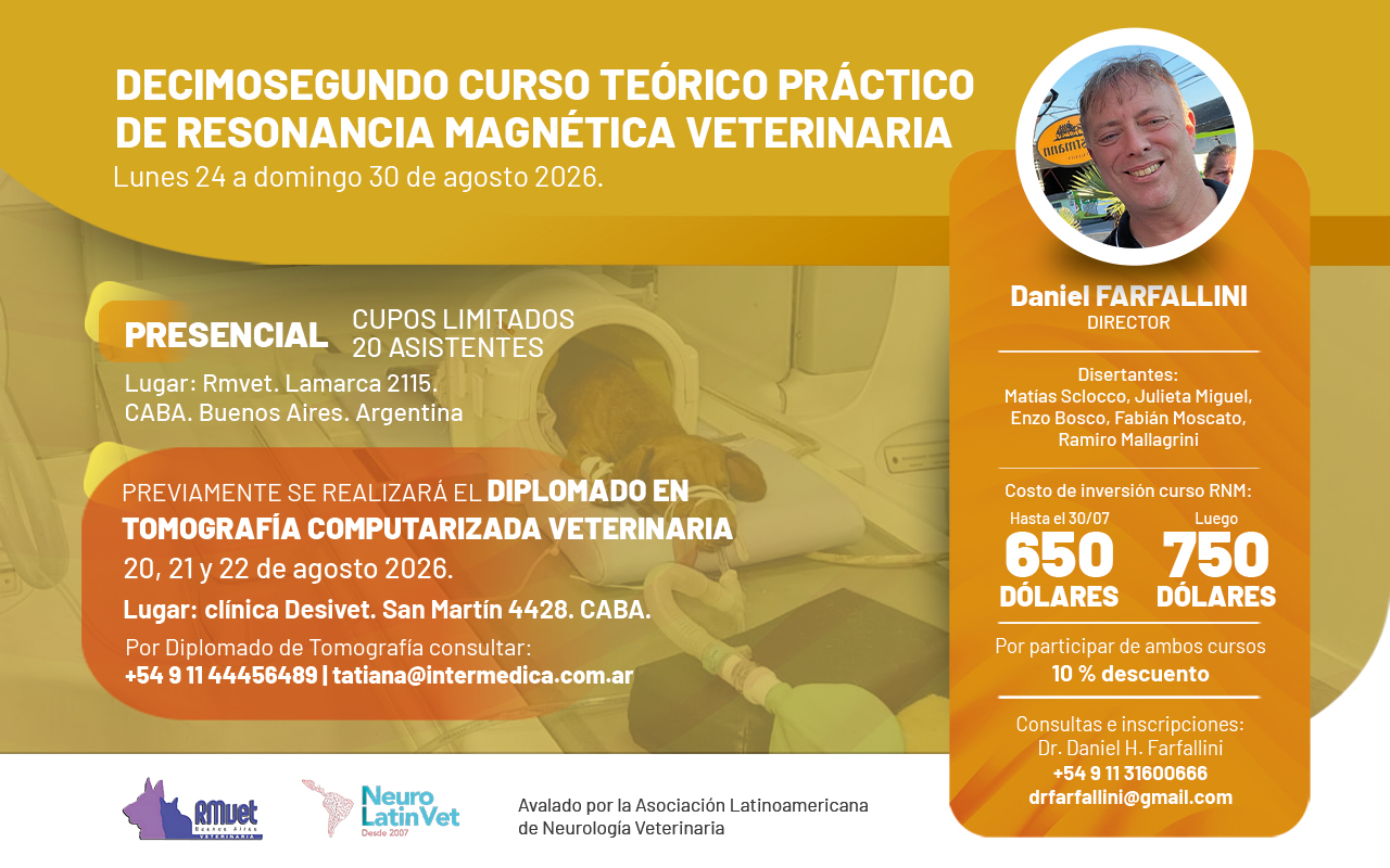 -12° CURSO TEÓRICO PRÁCTICO DE RESONANCIA MAGNÉTICA VETERINARIA.