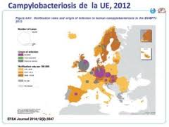 La campilobacteriosis es la zoonosis más importante de la UE, con 214.268 casos reportados en 2012. La carne de pollo es la primera causa de campilobacteriosis, y en general hay más casos en los meses de calor. En España, los 5.488 casos de 2012 suponen un 0,3% más respecto a 2011. Asimismo, el 54% de las muestras de canales tomadas en matadero, el 13% en salas de despiece y el 50% a nivel de comercio, fueron positivas. Tarde o temprano las autoridades europeas tendrán que establecer alguna medida tendente a reducir la incidencia. Lo más probable es que establezca un límite de contaminación microbiológica.