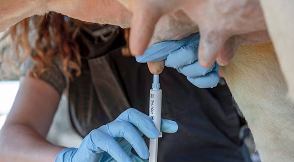 Para las vacas que reciben un antibiótico, las infecciones se pueden reducir hasta en un 50% mediante el uso de inserción parcial o de punta completa. La selección de un sellador de pezones con una opción de punta corta también reduce el riesgo de nuevas infecciones, ya que esto da como resultado una menor alteración de la epidermidis queratinizada dentro del canal de la raya, que se necesita para formar el tapón de queratina.