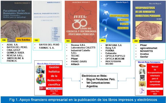 Con el objetivo de difundir la disponibilidad de Textos universitarios del ámbito veterinario, y de la gestión de los conocimientos científicos; extiendo la experiencia docente y, la modalidad de financiar la publicación de Textos disciplinares, con el apoyo financiero de las empresas del campo privado; luego de la experiencia vivida en el transito académico. Palabras clave: Textos universitarios | Ciencia veterinaria | Publicación impresa | Parasitología veterinaria | Redacción científica | Tesis de Grado | Perú. AUTOR: Marcelo Rojas Cairampoma. Profesor Principal cesante de la Universidad Nacional Mayor de San Marcos (Decana de América). Profesor Visitante en la Maestría de Riego y Drenaje de la Universidad Nacional Agraria La Molina. Miembro Honorario de la Asociación Peruana de Parasitólogos. Miembro Académico Titular de la Academia Peruana de Ciencias Veterinarias. Ex Profesor de Post Grado en varias universidades Nacionales y una de México. mrojasc41@gmail.com , marcelorojas@lamolina.edu.pe
