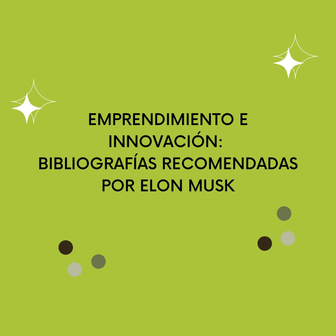 Con el objetivo de aportar información de utilidad bibliográfica en el ámbito universitario; se muestra un listado de libros recomendados por Elon Musk, el visionario emprendedor de real protagonismo científico social a nivel mundial. AUTORES: Marcelo Rojas Cairampoma*; Ronnie Vásquez Rojas**. *Profesor Visitante en la Universidad Nacional Agraria La Molina. Profesor Principal cesante de la Universidad Nacional Mayor de San Marcos. **Estudiante de la Carrera de Economía, en la Miami University, Ohio. TAGS: Libros. Bibliografía. Empresa. Emprendimiento. Innovación. Aprendizaje