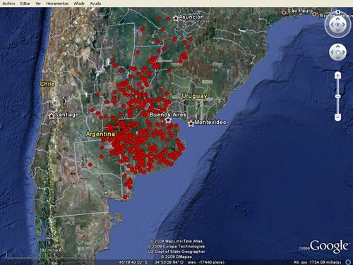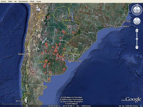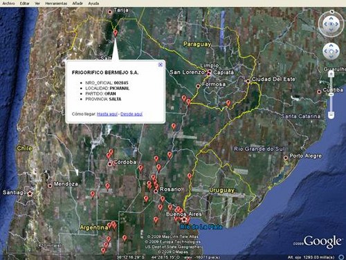 Georreferenciación de los frigoríficos con inspección del Senasa.
