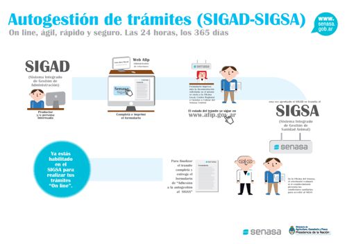Una vez aprobado el trámite administrativo, se inicia el segundo paso, el trámite sanitario. Para ello, el productor debe acercarse a la Oficina del Senasa donde opera habitualmente. Allí, luego que el veterinario a cargo verifique que la unidad productiva cumple con la normativa vigente y las condiciones sanitarias, el productor debe firmar una declaración jurada de “Adhesión a Autogestión para el uso del Sistema Integrado de Gestión de Sanidad Animal (Sigsa)”.