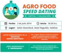 El jueves 3 de julio, en Valdivia, Chile, los emprendedores de la industria agroalimentaria de todo el país tendrán la posibilidad de conocer a inversionistas y encontrar financiamiento para sus negocios en el “Agro Food Speed Dating: Capital y Validación”, evento que organizan Startup Valdivia y Nube Cowork con el apoyo de Austral Incuba –incubadora de negocios de la Universidad Austral de Chile- y Corfo.