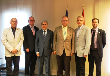 Representantes de las diferentes organizaciones mantuvieron una reunión en la sede de la Organización Médica Colegial a la que asistieron, el Dr. Juan José Rodríguez Sendin; presidente del Consejo General de Colegios Oficiales de Médicos; Juan José Badiola y Luis Alberto García, presidente y vicepresidente , respectivamente del Consejo General de Colegios de Veterinarios; el presidente del Colegio de Vterinarios de Soria, Rafael Laguens así como Jan Vaarten, director ejecutivo de la Asociación Veterinaria Mundial; Zeev Noga, veterinary advisor y el Dr. Otmar Kloiber, secretario general de la Asociación Médica Mundial.