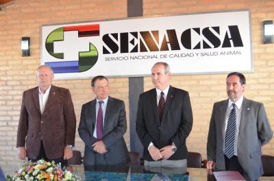 El vicepresidente del Servicio Nacional de Sanidad y Calidad Agroalimentaria (Senasa), Luis Carné firmó un nuevo acuerdo de cooperación técnica de capacitación, con el presidente del Servicio Nacional de Calidad y Salud Animal (Senacsa) de Paraguay, Hugo Idoyaga Benítez, para el fortalecimiento del Laboratorio del vecino país en el control de vacunas de fiebre aftosa y diagnóstico de esta enfermedad.