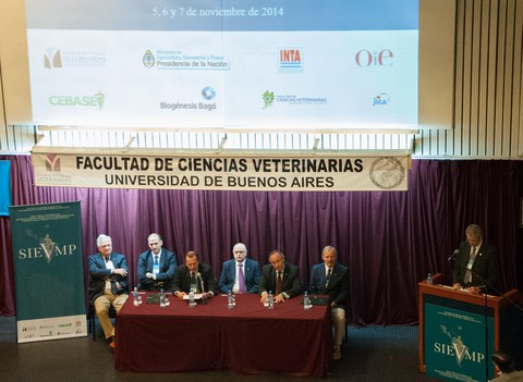 El acto de apertura se realizó en el auditorio de la Facultad de Veterinaria UBA y fue presidido por Emilio León, investigador del Instituto de Patobiología del INTA Castelar, junto a Carlos van Gelderen (PROSAIA), Ernesto Spath (INTA), Andrés Pérez (University of California en Davis) y Humberto Cisale (Vicedecano Fac. Vet UBA).