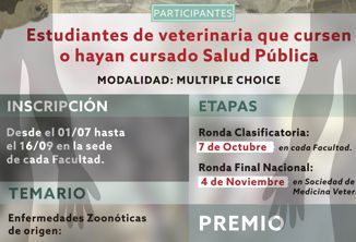 Podrán participar estudiantes de Facultades de Veterinaria Nacionales y Privadas. La competencia se efectuará en dos instancias: una a nivel local de cada facultad; y la otra a nivel nacional. En ambos casos, la evaluación será por un sistema de preguntas con respuestas de múltiple opción.