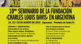 Este evento reunirá a profesionales patólogos de las ciencias veterinarias de la Argentina. Contará con la disertación de especialistas de Uruguay, Chile, España, Estados Unidos y otros países. Se realizará en Esperanza los días 24, 25 y 26 de agosto de 2016.