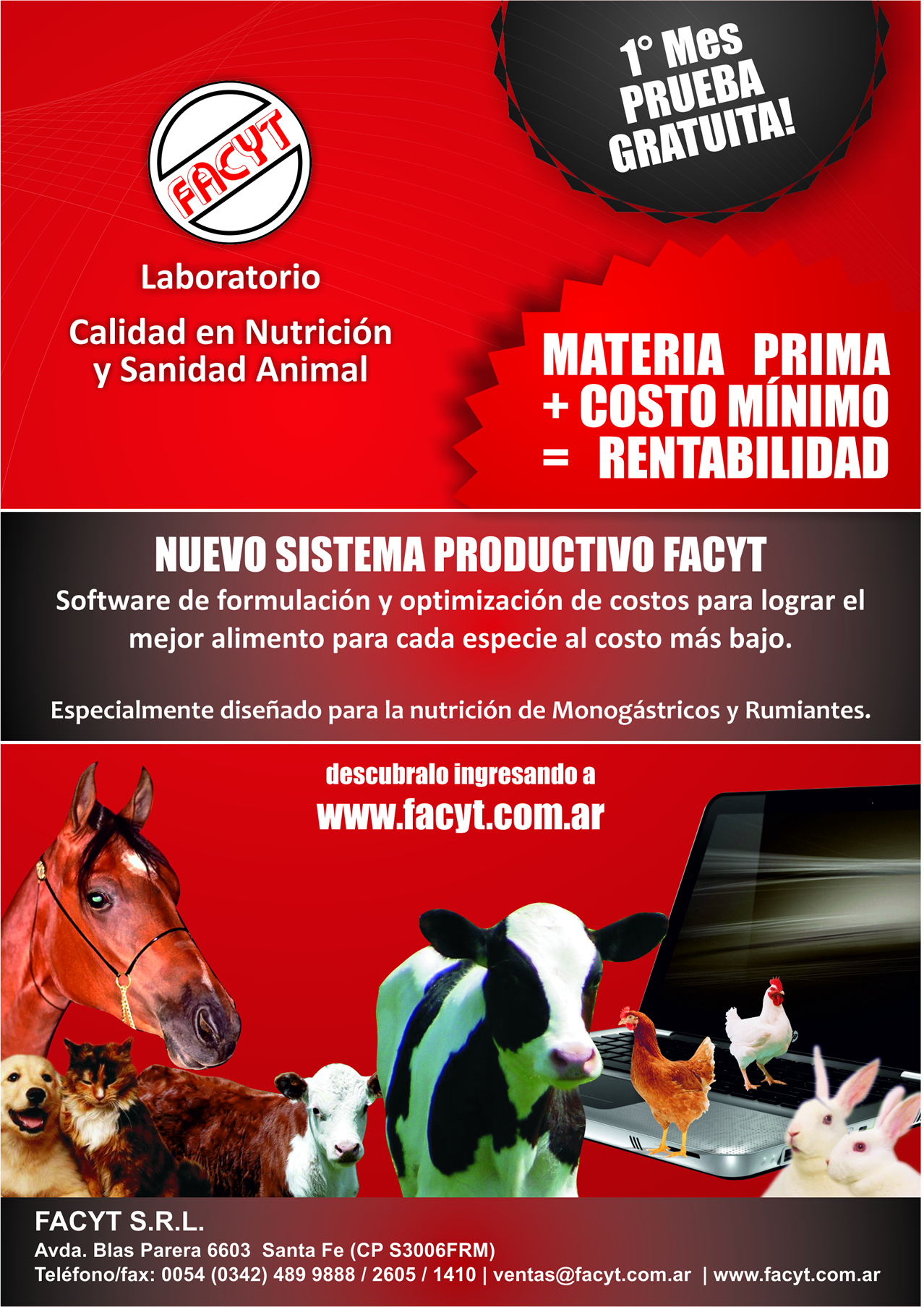 A partir del trabajo conjunto de un grupo interdisciplinario de profesionales tanto de la medicina veterinaria como de las tecnologías de la información, fue posible lograr un software que permite formular alimentos que satisfagan las necesidades nutricionales tanto de monogástricos como de rumiantes, minimizando los costos.