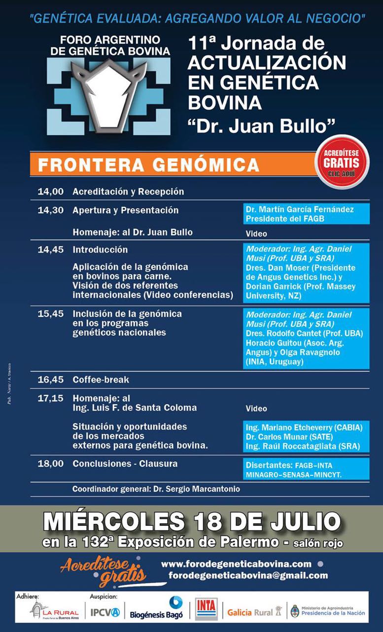 El Foro Argentino de Genética Bovina (FAGB) realizará el miércoles 18 de julio la 11a Jornada de Actualización, una vez más en el marco de la Semana de la Carne, durante la Exposición Rural de Palermo.
