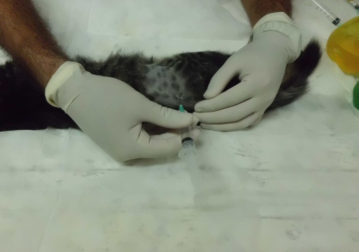 Los investigadores trabajaron con la técnica de punción aspirada con aguja fina (PAAF) de médula ósea en esta especie para la detección de dicha enfermedad. Para realizar la punción aspirada de médula ósea para la observación microscópica del parásito, se seleccionó la cresta iliaca como sitio de punción en felinos, por ser un lugar con buena actividad hematopoyética y de fácil localización.