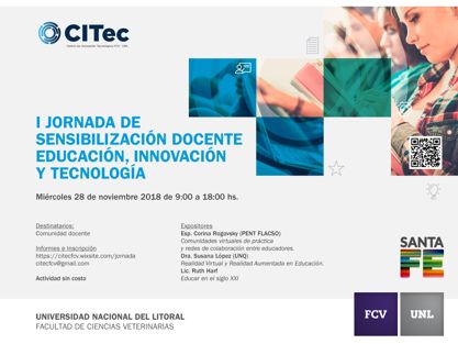La Facultad de Ciencias Veterinarias de la UNL invita a docentes de nivel medio, superior universitario y no universitario a participar de la I Jornada de sensibilización docente: Educación, Innovación y Tecnología.