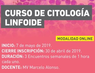 Vet Comunicaciones lanza el Curso Online sobre Citología Linfoide, a cargo del MV Marcelo Javier Alonso. Inscribite!! Inicio: 7 de mayo de 2019. Cierre inscripción: 30 de abril de 2019.