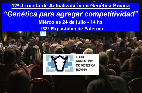 El Foro Argentino de Genética Bovina (FAGB) realizará el miércoles 24 de julio la 12a Jornada de Actualización, durante la 133a Exposición Rural de Palermo.