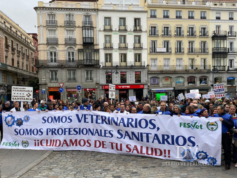 Después de 25 años y al grito de “los veterinarios somos sanitarios”, más de 3.000 profesionales del sector veterinario, según cifras de los organizadores, han marchado por las calles de la capital española desde la Puerta del Sol hasta el Ministerio de Sanidad. La manifestación veterinaria, convocada por la Federación Estatal de Sindicatos Veterinarios (Fesvet) y por la comisión organizadora de veterinarios compuesta por Carlos Nunes, Carlos Bielsa, Diego Villalaín y Pilar Pérez, ha estado encabezada con una pancarta con el lema “somos veterinarios, somos profesionales sanitarios, cuidamos de tu salud”.