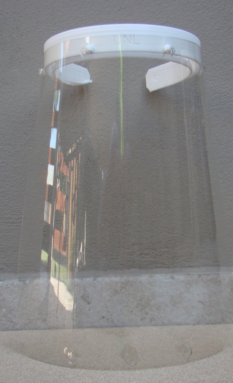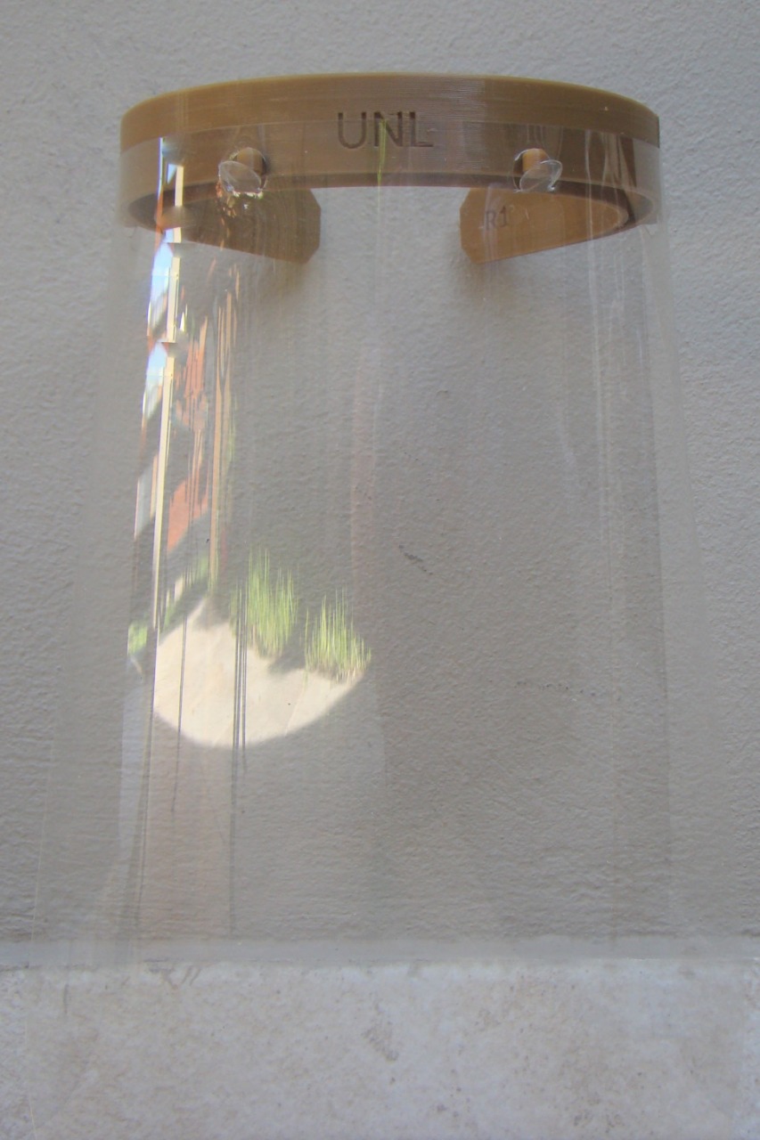 Estas máscaras están constituidas por una visera realizada con material PLA (Ácido Poliláctico) de 1.75 mm, material termoplástico biodegradable, hecho a base de recursos renovables y el agregado de una lámina transparente de material PVC. El diseño y materiales fueron provistos por Universidad Nacional del Litoral (UNL).