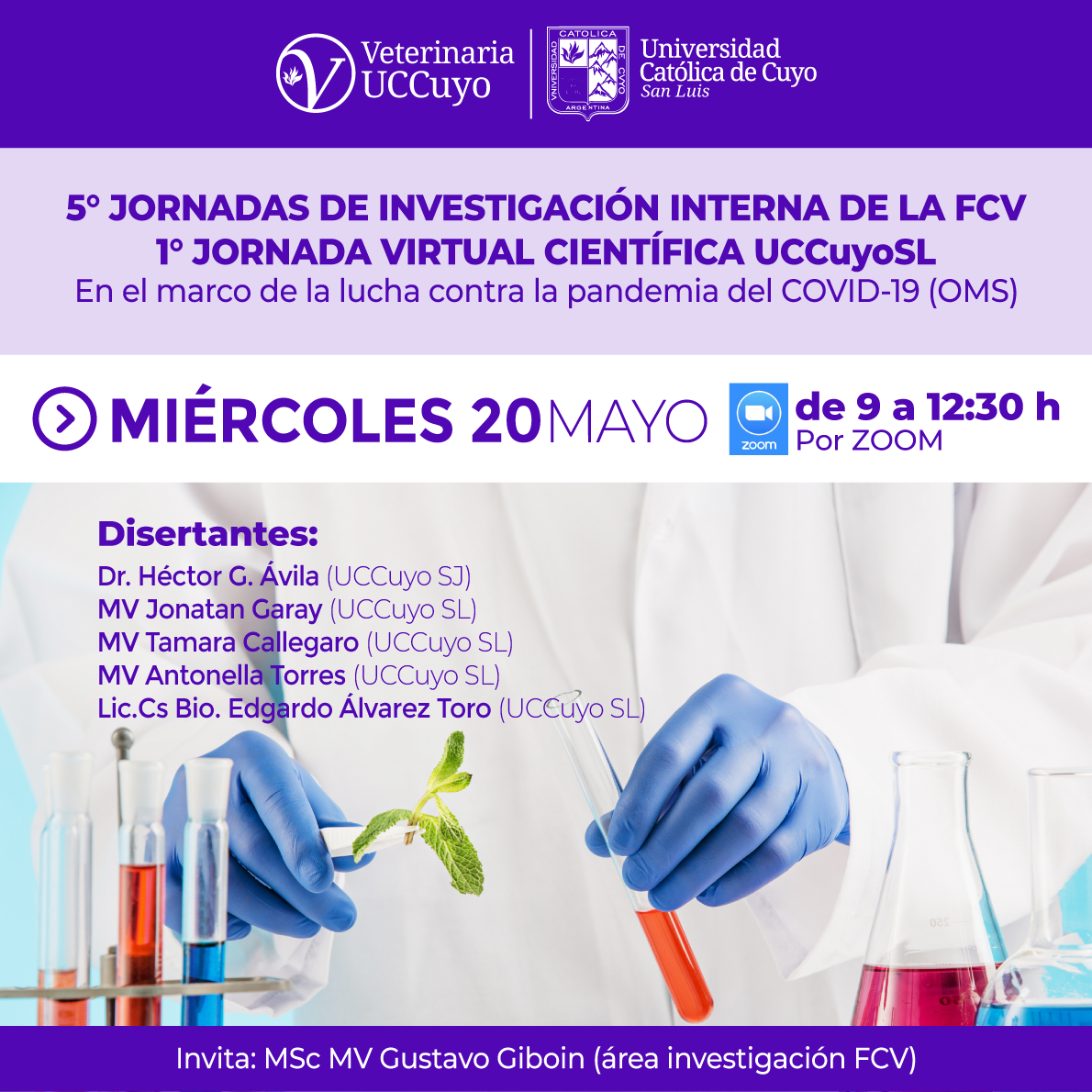 El miércoles 20 de mayo, a partir de las 9 hrs, contaremos con la presencia virtual del docente Dr. Héctor Ávila de UccuyoSJ y graduados de la sede San Luis, ahora médicos/as veterinarios/as, además de los investigadores MSc MV Giboin (organizador) y el Lic. En Cs Biológicas Edgardo Álvarez Toro.