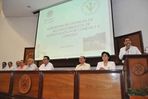 Para entregar las acreditaciones estuvo el presidente de CONEVET, Carlos Lamothe Zavaleta, quien dijo sentirse satisfecho por ver coronados los esfuerzos que ha realizado la Facultad de Medicina Veterinaria para acreditar el programa educativo.