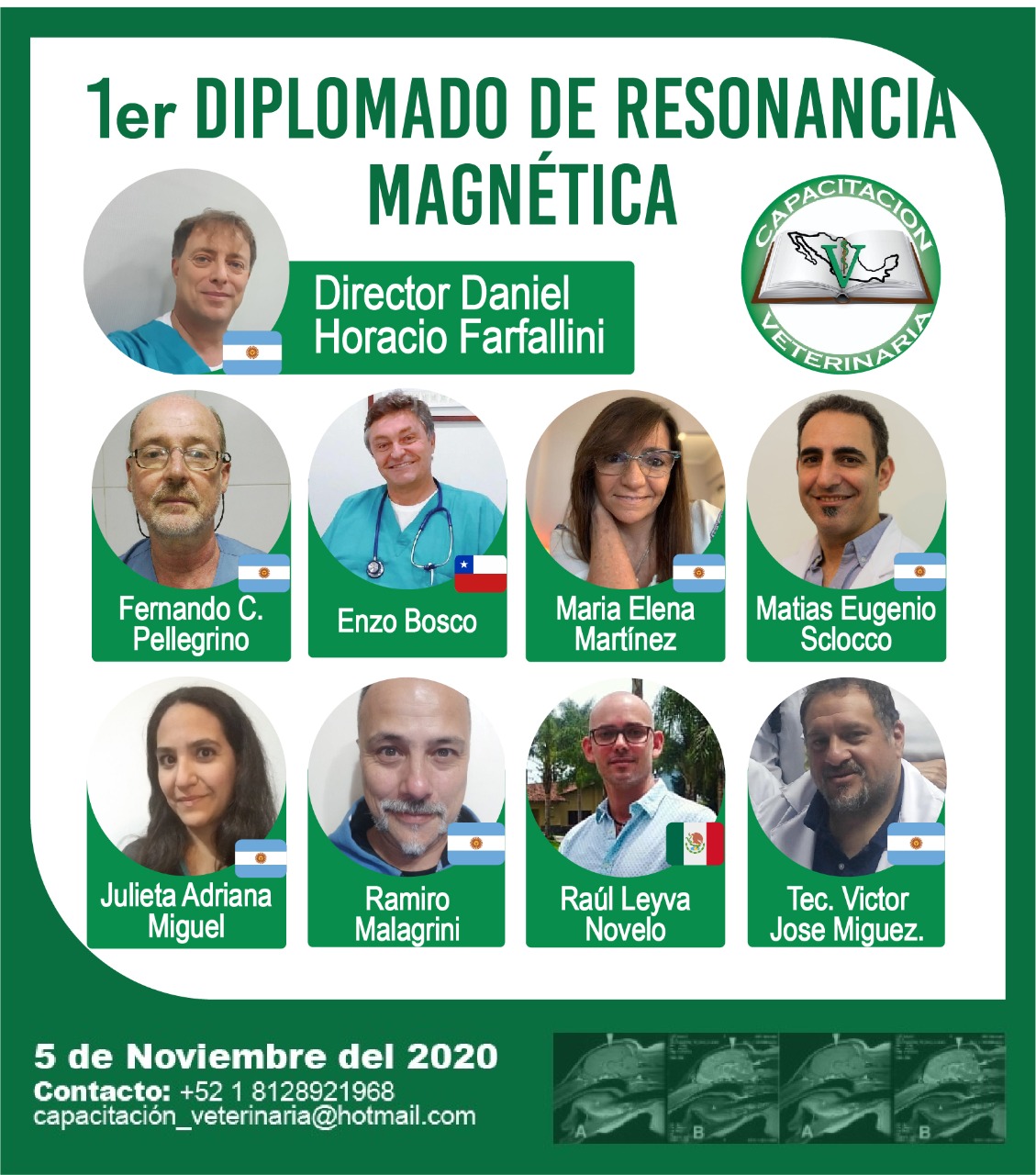 Buen día Magdalena: Para mayor información sobre el Diplomado de Resonancia Magnética en modalidad online debe comunicarte a: Tel: +52 1 8128921968 capacitacion_veterinaria@hotmail.com Cordialmente.