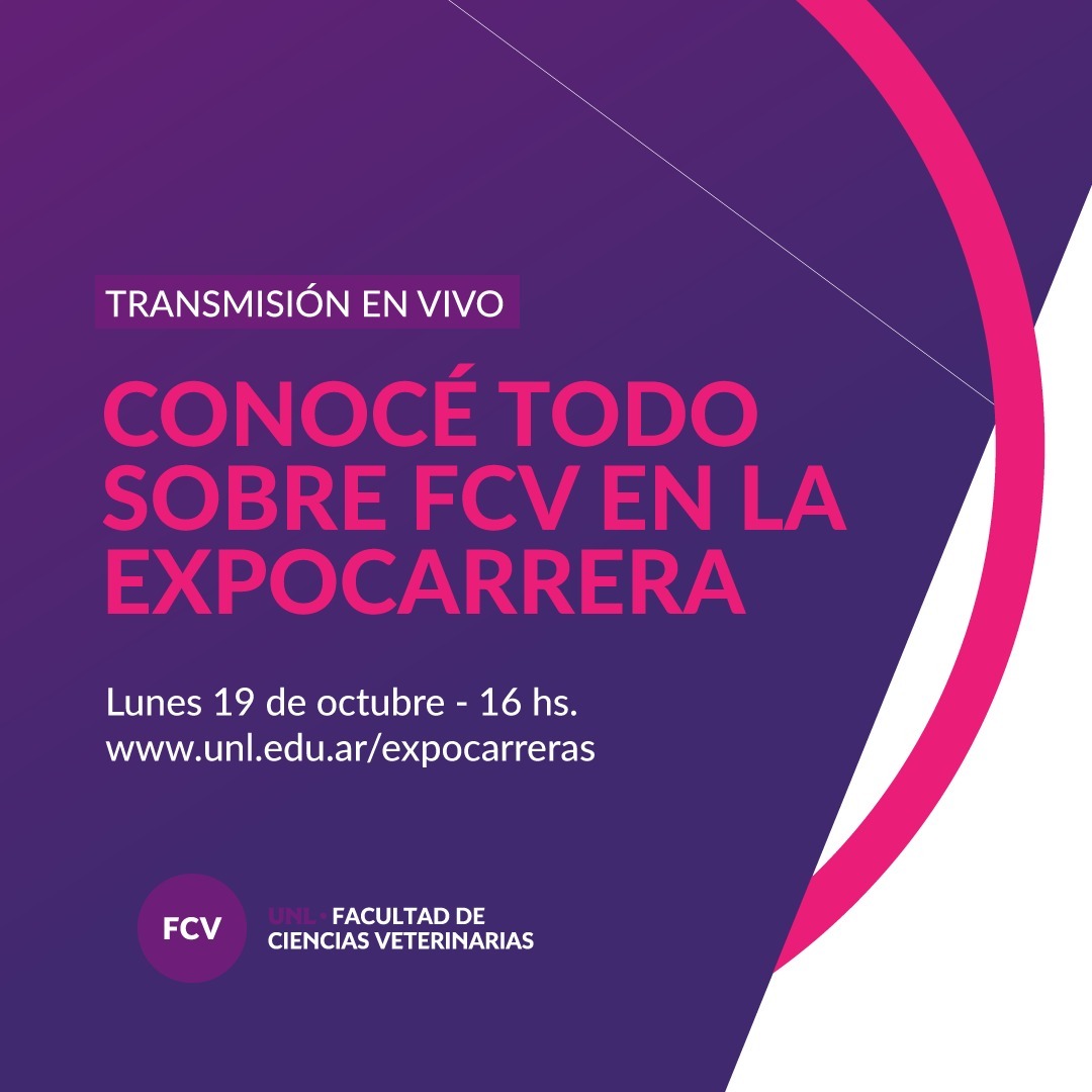 Los interesados en conocer aspectos de la oferta académica presencial y a distancia de la Facultad de Ciencias Veterinarias y de la vida universitaria podrán hacerlo a través del programa en vivo de la FCV en la Expocarreras 2021.