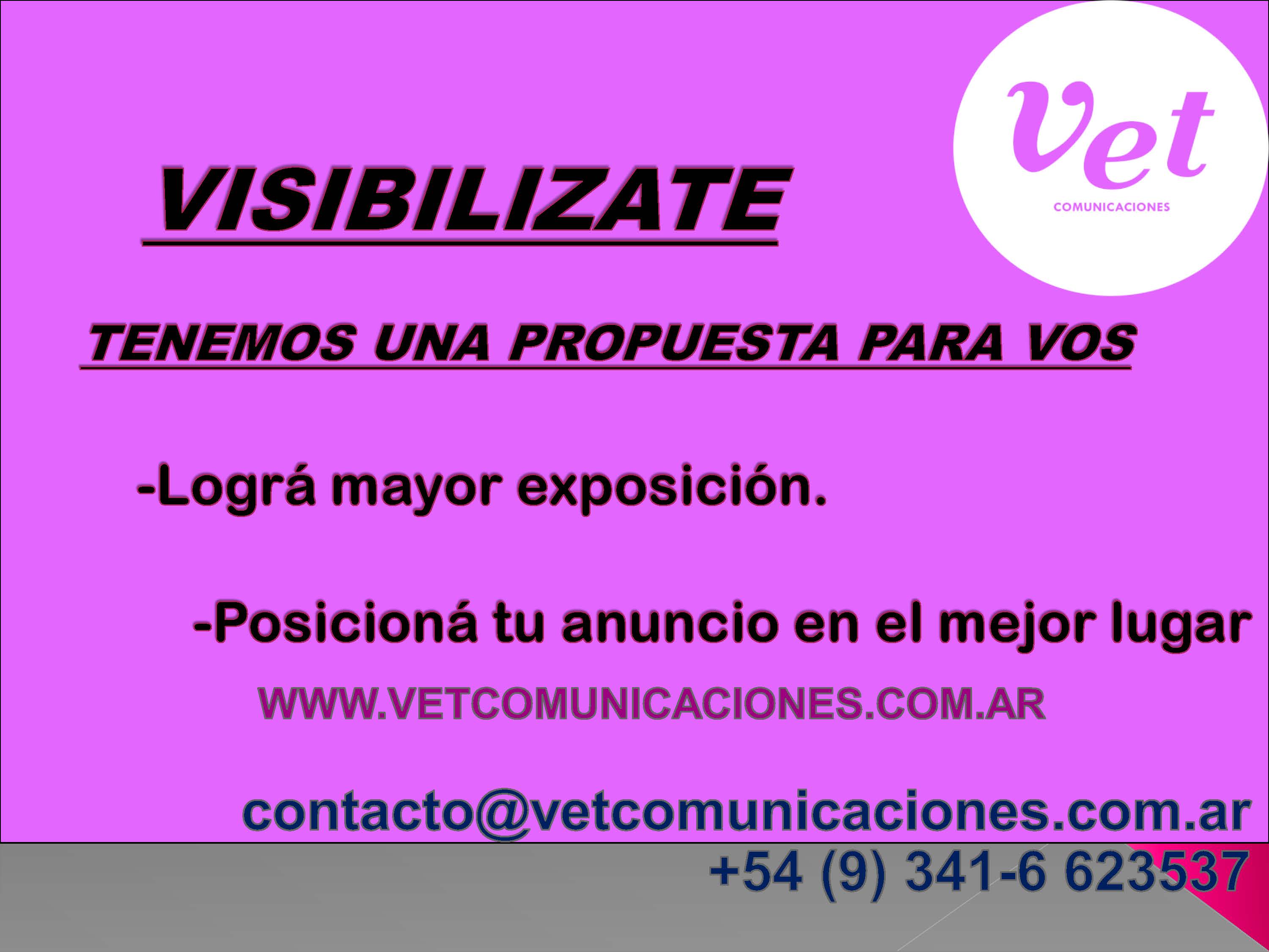 Empezá hoy! Comunicate a contacto@vetcomunicaciones.com.ar ó móvil (WA) +54 9 341 6623537