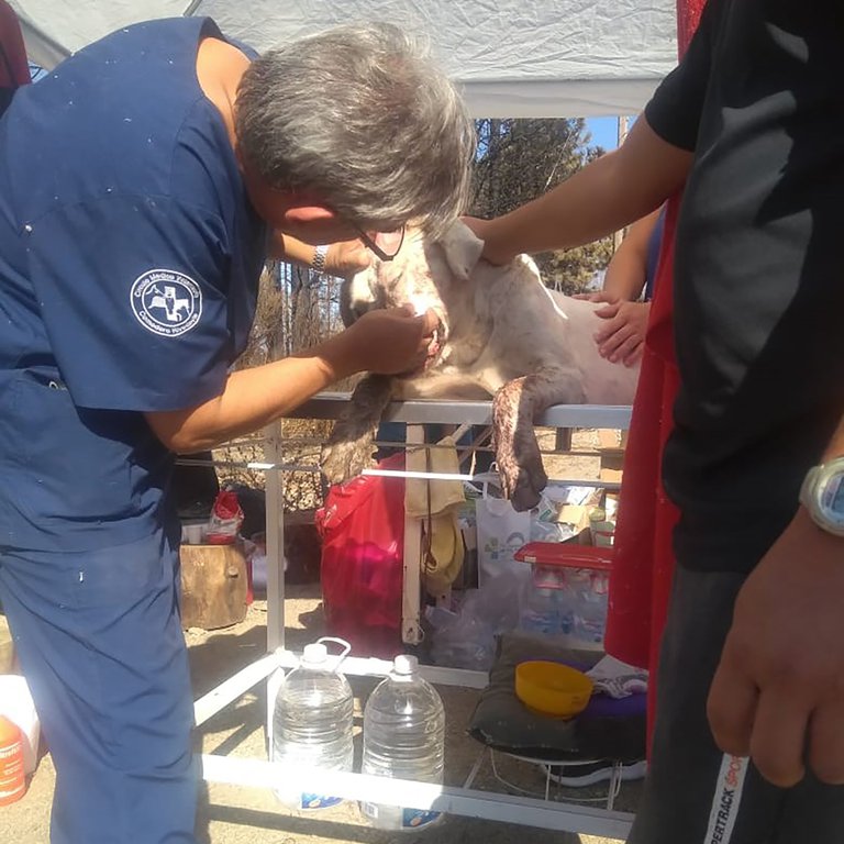 Stankewitsch se encontró en el lugar con 25 colegas y más de un centenar de voluntarios que ya habían montado con gazebos verdaderos hospitales de campaña junto a la Ruta 40 para atender a los animales más afectados por el humo y las lenguas de fuego.