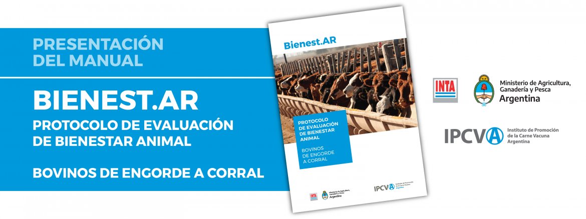 El lunes 5 de julio, el Instituto de Promoción de Carne Vacuna Argentina (IPCVA) y el Instituto Nacional de Tecnología Agropecuaria (INTA) presentaron en conferencia de prensa el manual “Bienest.AR, Protocolo de evaluación de bienestar animal en bovinos de engorde a corral”. Palabras clave: Bienestar animal. Protocolo. Bovinos. IPCVA. INTA.