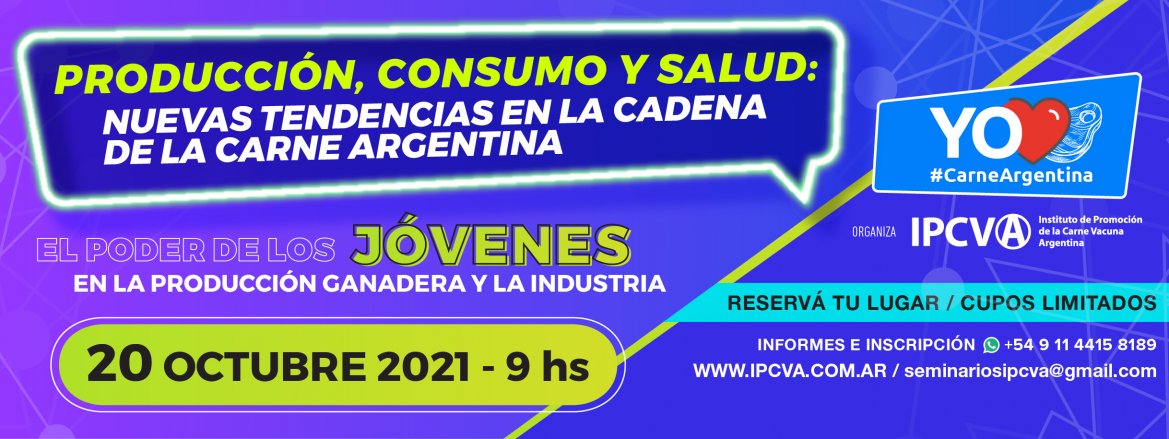 El próximo miércoles 20 de octubre de 2021, a partir de las 9 horas, el Instituto de Promoción de la Carne Vacuna Argentina (IPCVA) realizará un nuevo seminario virtual, especialmente pensado para los más jóvenes de la cadena de ganados y carnes de la Argentina.