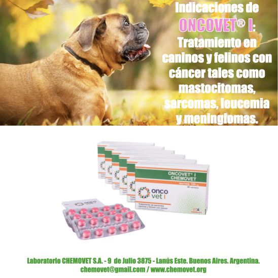 ONCOVET® I (imatinib) es utilizada con gran éxito en perros y en gatos con mastocitomas, fibrosarcomas, tumores del estroma gastrointestinal, hemangiosarcomas, leucemia de células B, meningiomas, sarcomas asociados a vacunas. Es el único ITK de uso veterinario a nivel mundial aprobado para uso en gatos.