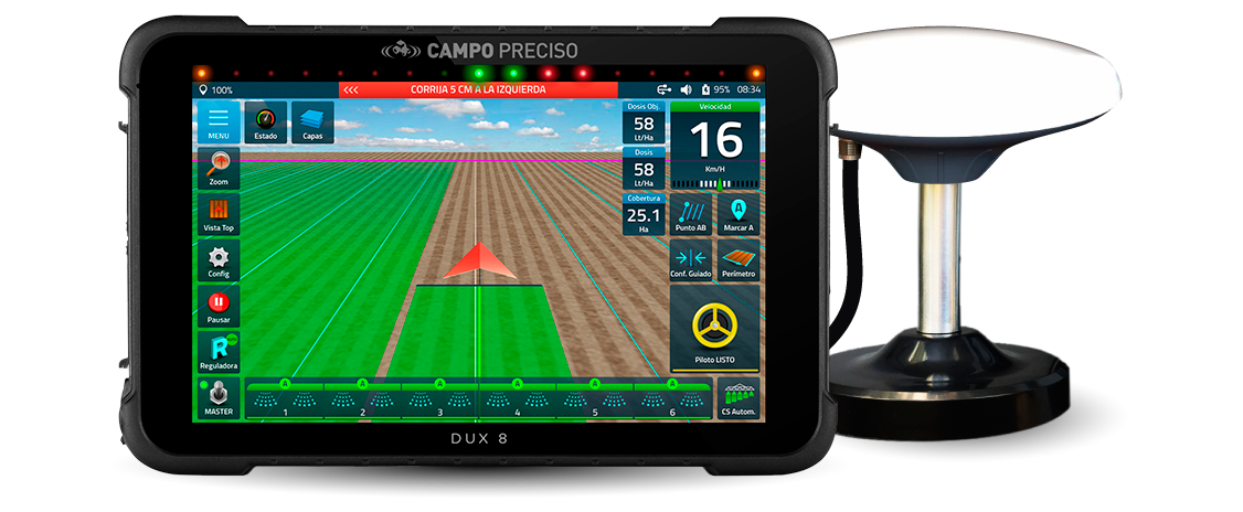 Banderillero y mapeador satelital DUX 8 - Agricultura de precisión. Hasta 2 cm de precisión. Rápido y potente. Robusto y preciso. Disponibilidad inmediata. 2 años de garantía. Industria argentina.