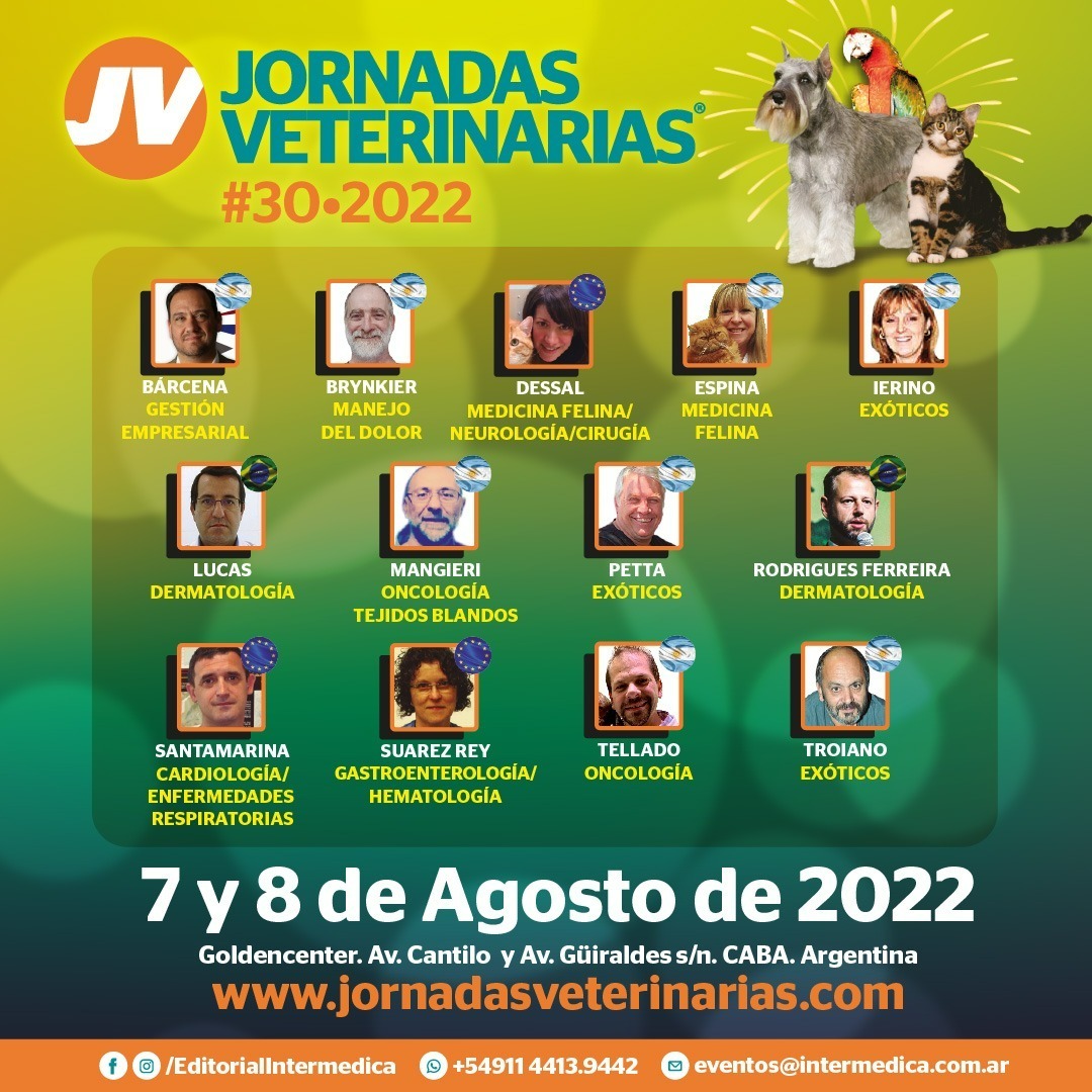 Durante los días 7 y 8 de agosto de 2022 se llevarán a cabo las Jornadas Veterinarias #30.2022 en el Goldencenter. Av. Cantilo y Av. Güiraldes s/n. CABA. Argentina