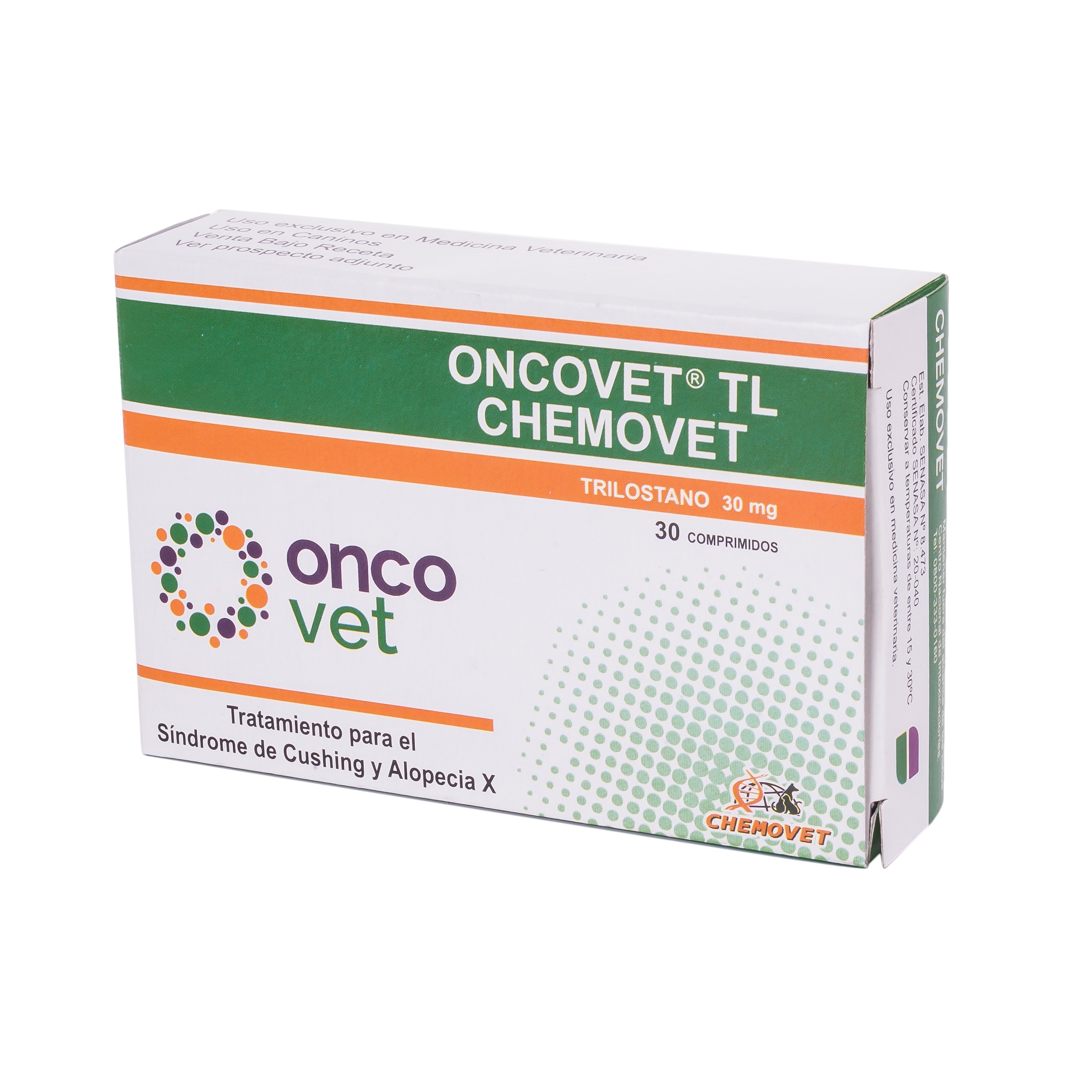 ONCOVET TL (Laboratorio CHEMOVET), es un medicamento cuyo principio activo es trilostano, aprobado para tratamiento médico de perros con hiperadrenocorticismo dependiente de la hipófisis (HDP), así como hiperadrenocorticismo dependiente de las glándulas suprarrenales (HDA).1 Se forma farmacéutica es en comprimidos ranurados, fácilmente fraccionables para administrar por vía oral, con la dosis ajustada en función de la respuesta individual del paciente, incluido el control de los signos clínicos y los resultados de las pruebas de laboratorio. El tratamiento debe reservarse para aquellos pacientes con un diagnóstico definitivo de hiperadrenocorticismo establecido mediante pruebas adecuadas y signos clínicos compatibles.