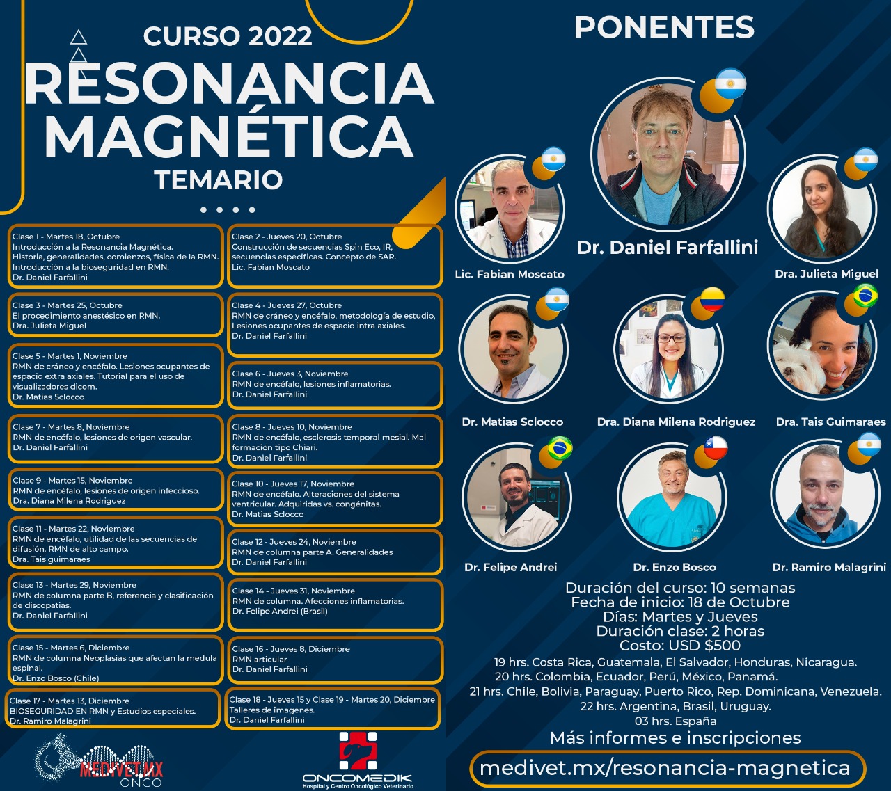 Hola Mariel: Para Informes e inscripciones debes dirigirte a: medivet.mx/resonancia-magnetica +52 722 910 9089 +52 712 264 1236 Saludos.