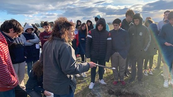 Luego de charla, se les enseñó a los alumnos a tomar muestras del suelo con el calador, en el sector que la escuela tiene para la realización de prácticas agrícolas.
