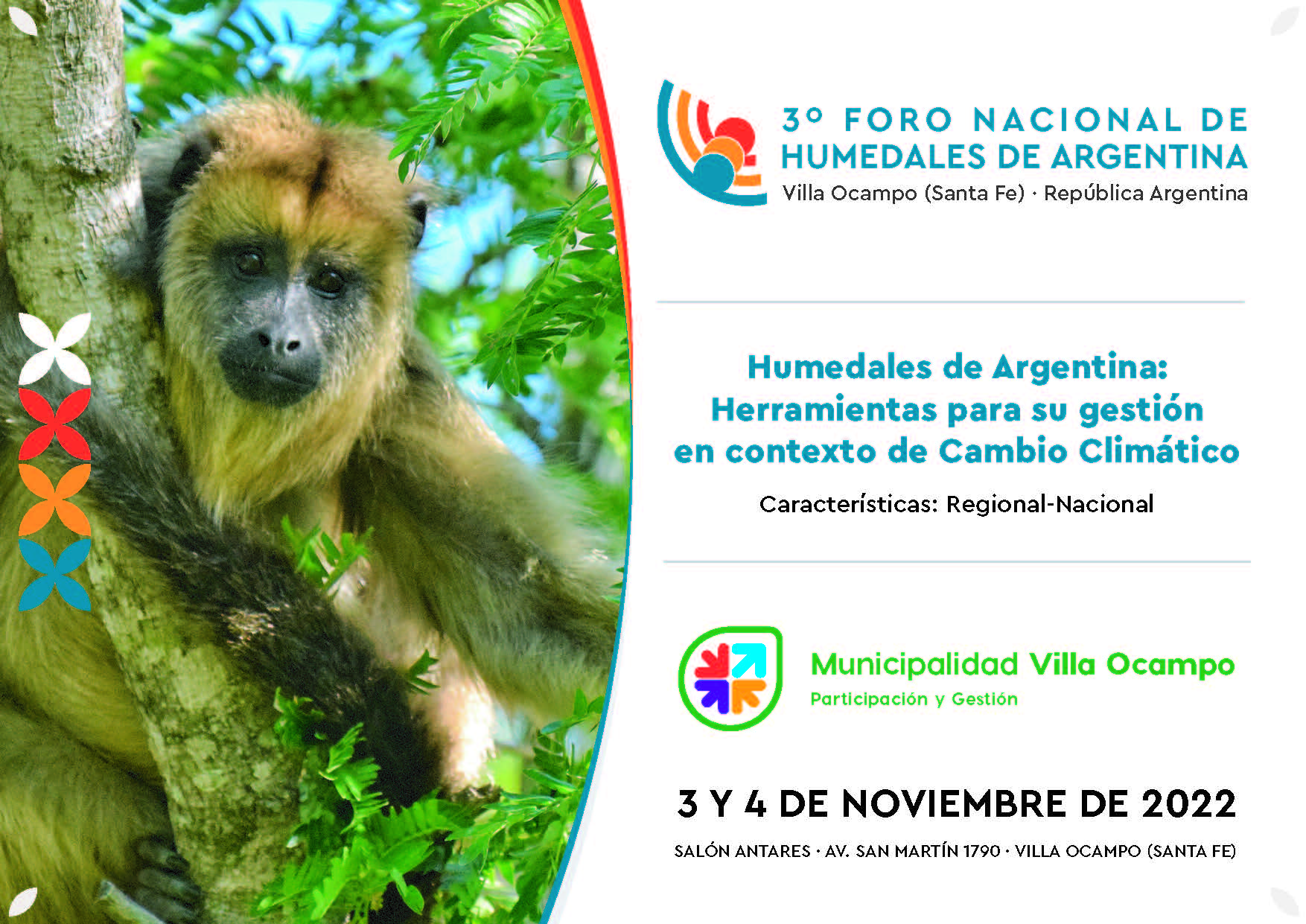 Durante los días 3 y 4 de noviembre de 2022, se realizará en la localidad de Villa Ocampo (Santa Fe), el 3° Foro Nacional de Humedales, bajo el lema “Humedales de Argentina: Herramientas para su gestión en contexto de Cambio climático”.