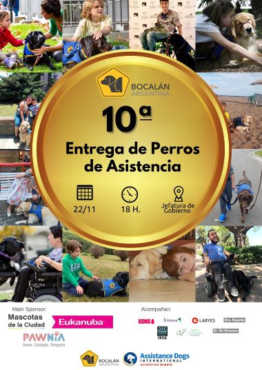 El 22 de noviembre a las 18 horas, Bocalán Argentina realizará la Décima Entrega de Perros de Asistencia en la Jefatura de Gobierno de la Ciudad de Buenos Aires.