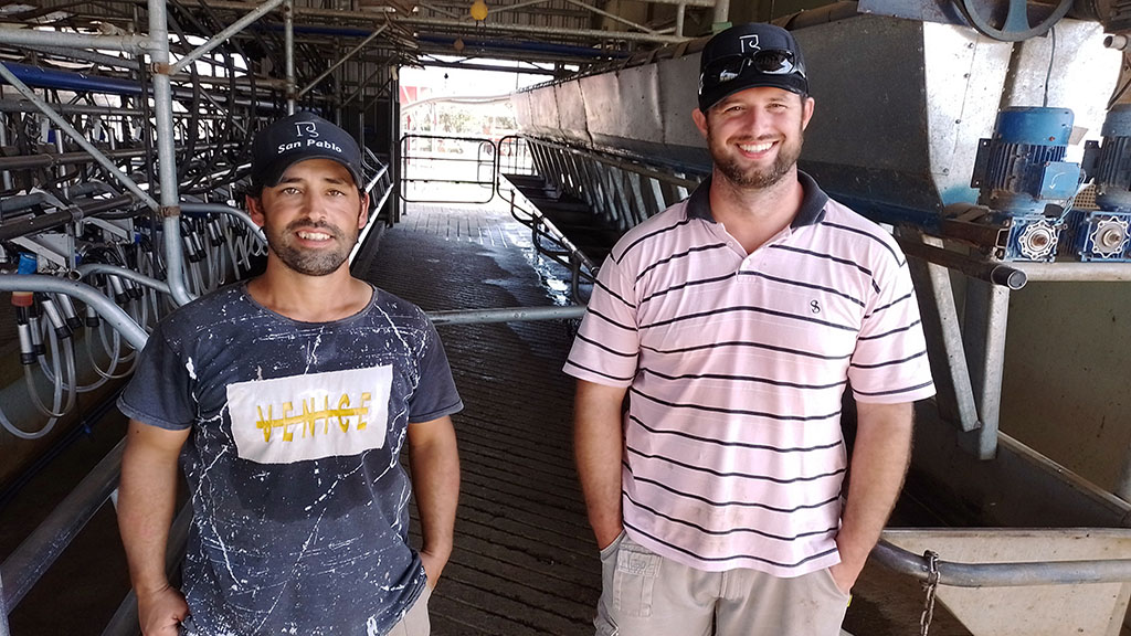 2. Juan Ramati (derecha), con su responsable de ordeñe en el establecimiento San Pablo.