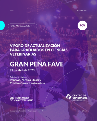 El día viernes 21 de abril del 2023 se llevará a cabo el V Foro de Actualización para Graduados en Ciencias Veterinarias, en la Facultad de Ciencias Veterinarias de la Universidad Nacional del Litoral (FCV-UNL)