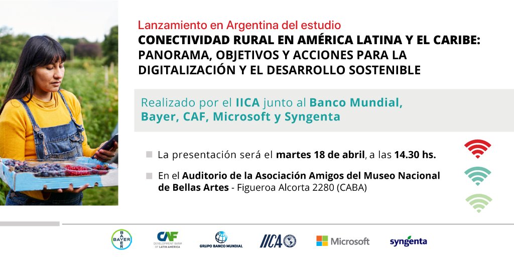 Mañana martes 18 de abril a las 14.30hs, en el Auditorio de la Asociación Amigos del Museo Nacional de Bellas Artes (Figueroa Alcorta 2280, Ciudad de Buenos Aires, Argentina), se presenta el trabajo impulsado por el IICA (Instituto Interamericano de Cooperación para la Agricultura) en asociación con Banco Mundial, Bayer, CAF, Microsoft y Syngenta. Este estudio representa la mayor actualización disponible en relación con la situación de la conectividad rural en la región. El mismo ha sido publicado y presentado a nivel global en diciembre de 2022 y contó con una importante repercusión en los medios de comunicación de la región1.