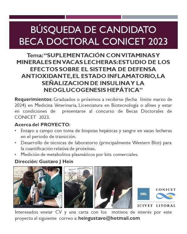 TAGS: Beca doctoral. Vacas lecheras. Medicina Veterinaria. Licenciatura en Biotecnología.