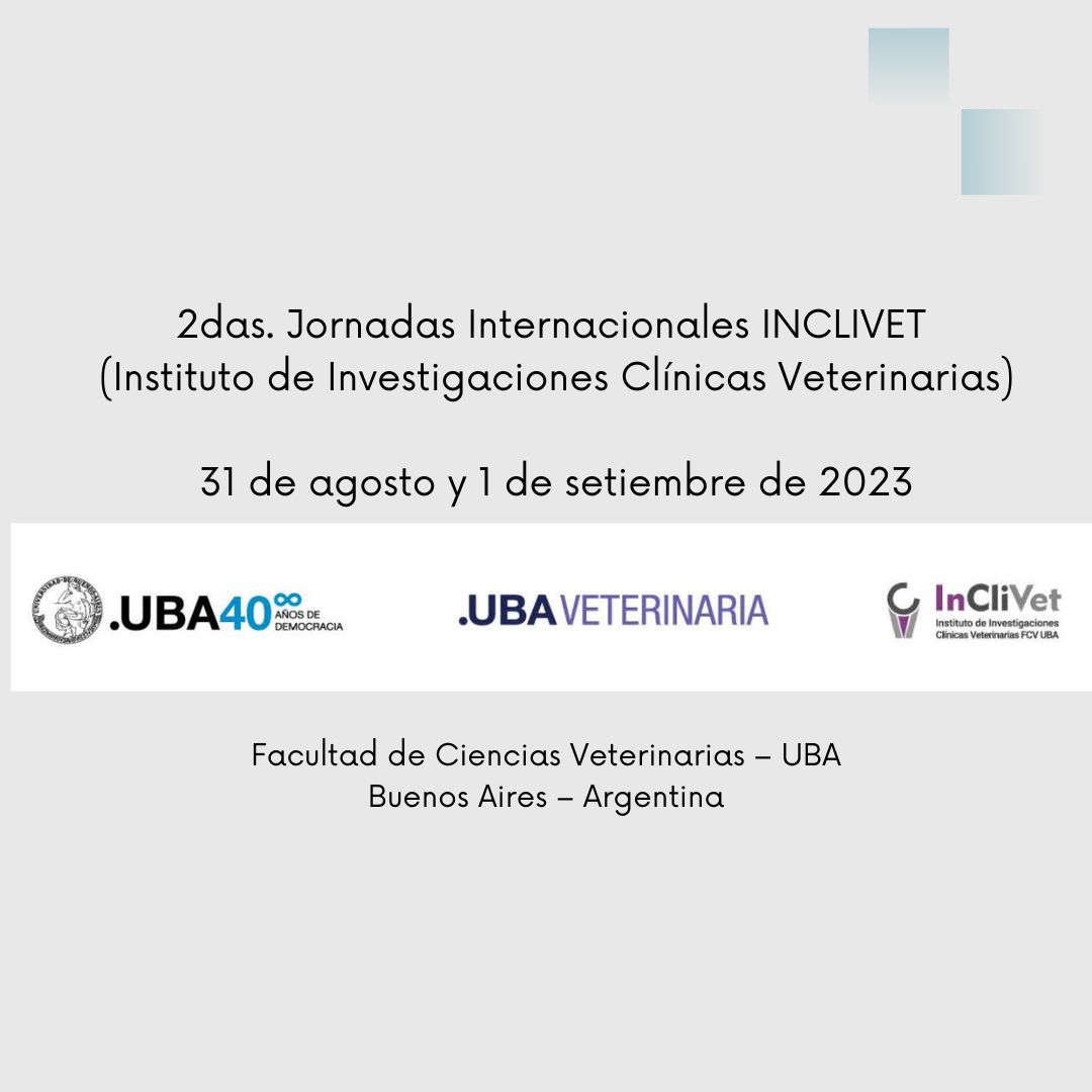 El jueves 31 de agosto y el viernes 1 de setiembre de 2023 se llevarán a cabo las 2das. Jornadas Internacionales INCLIVET en formato mixto, donde destacados profesionales internacionales dictarán conferencias virtuales, se realizará una mesa redonda presencial y virtual y se presentarán trabajos científicos en formato virtual y presencial, relacionados con la investigación clínica. Estas actividades serán no aranceladas.
