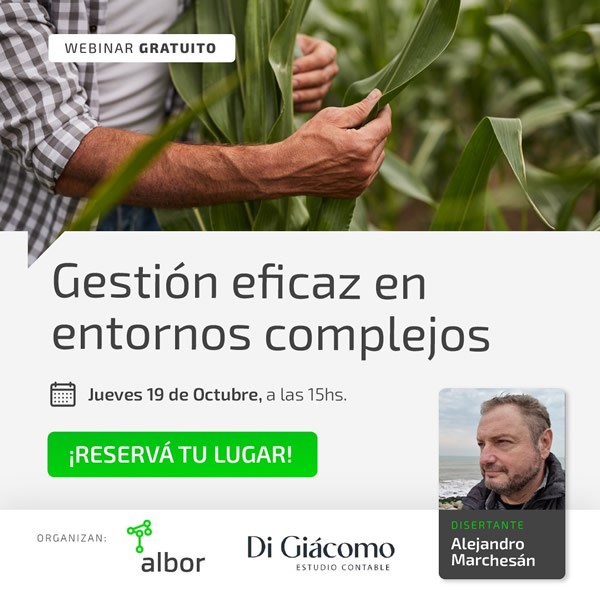 Por eso, Albor, la empresa líder en sistemas de gestión para el agro, con más de 30 años de experiencia, junto a Di Giácomo Estudio Contable, invita a un webinar gratuito, que explorará estrategias para abordar estos desafíos de manera efectiva. La jornada virtual es libre y gratuita, con cupos limitados.