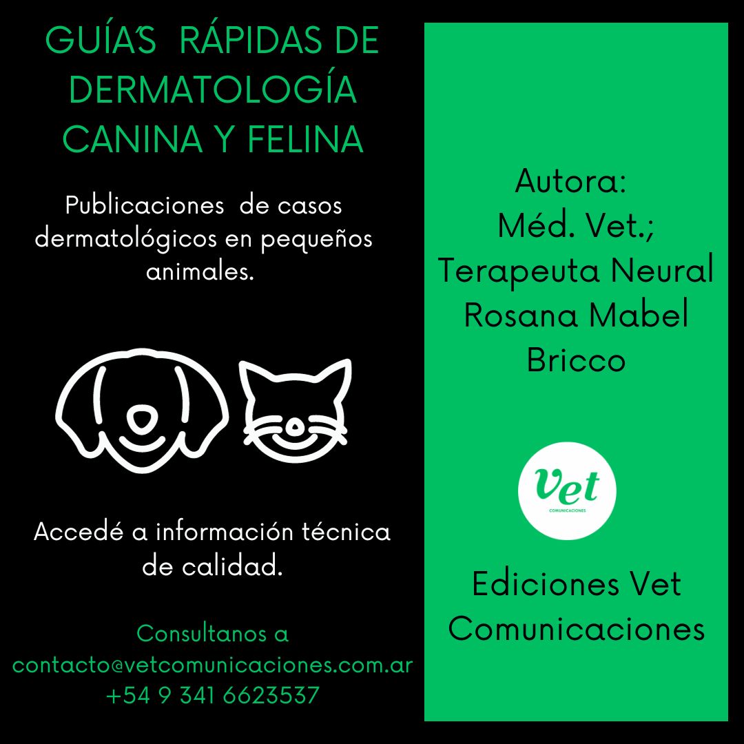 Son publicaciones digitales de la Médica Veterinaria Rosana Mabel Bricco, editadas por Vet Comunicaciones, que tratan sobre los problemas dermatológicos más comunes en caninos y felinos, y sus abordajes en la clínica diaria.