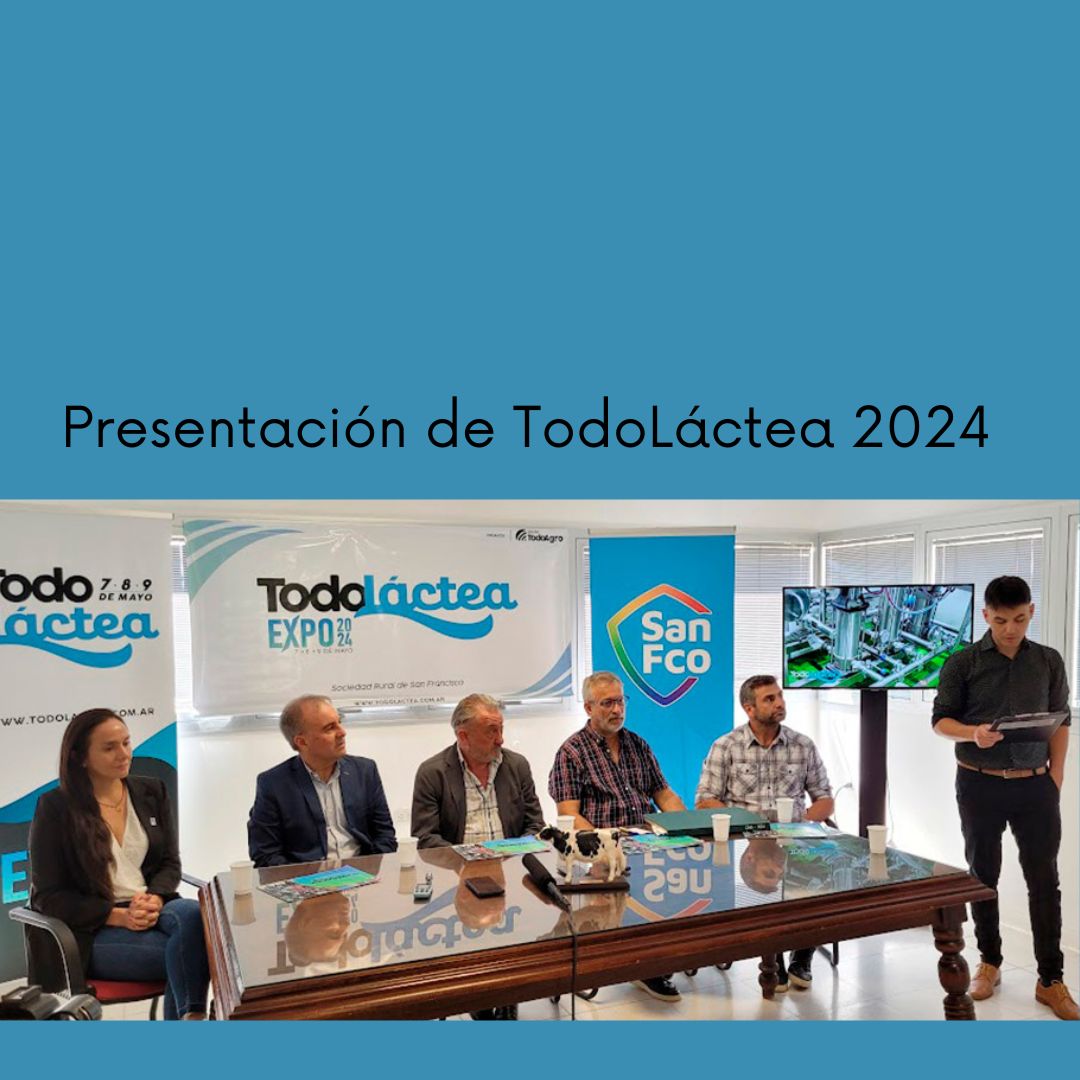 La Sociedad Rural de San Francisco fue el escenario para formalizar la realización de la expo durante el 2024. Allí, se hicieron presentes ante una concurrida rueda de prensa el responsable de la organización de TodoLáctea, José Iachetta; el Director de Producción Lechera de la Provincia de Córdoba, Dr. Marcelo Cravero; en representación de la Sociedad Rural local Mariano Alissio; desde el plano municipal y a cargo del área de Desarrollo Económico y Educativo, Marcelo Moreno; además de la responsable de Evaluación Sensorial del INTI Lácteos, Ivana Nieto.