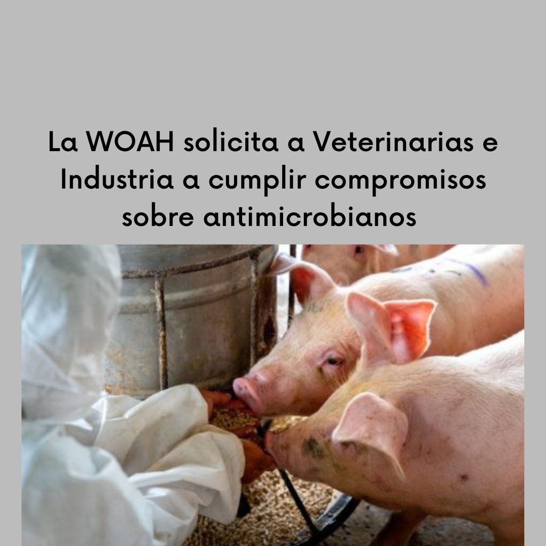 La WOAH pide a sus miembros que restrinjan el uso de antimicrobianos únicamente al uso médico veterinario y que entablen un diálogo activo con las partes interesadas para lograr una prohibición total del uso de antimicrobianos como promotores del crecimiento, empezando por aquellos que son de importancia crítica para la salud humana. .