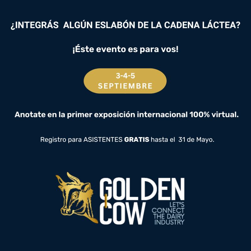 Golden Cow es el espacio ideal para que la industria láctea global se conecte, con una doble misión: permitir que los proveedores del sector lácteo encuentren nuevos clientes y distribuidores mientras muestran sus últimas innovaciones y proporcionar a los productores de todo el mundo acceso a formación de primer nivel y conocimiento de las últimas tecnologías del sector. TAGS: Exposición virtual. Industria láctea. Lechería. Sector lácteo.